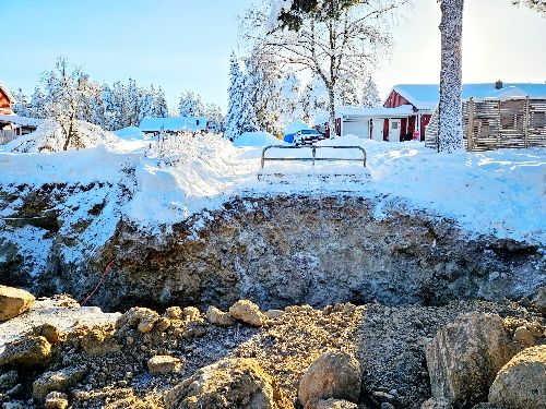 Åkte hemåt vid halv fyra. Fast vår uppfart går inte att nyttja.