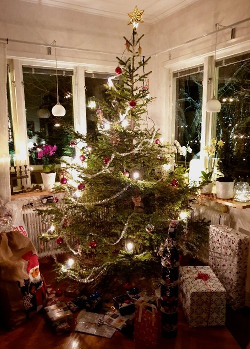 Efter Kalle hoppade vi i snyggkläderna och sen tog vi sparkarna till julfirandet – hos makens morbror med oäkta hälft och deras äldsta barn med make!
