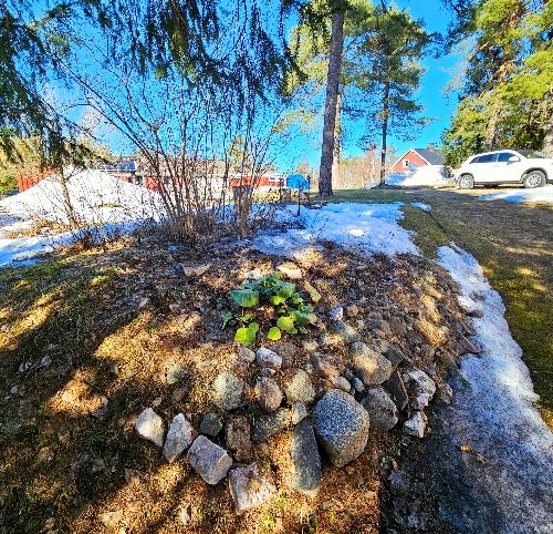 Och baksidan, som ju ligger skuggigare, har ju sin beskärda del av snö kvar…