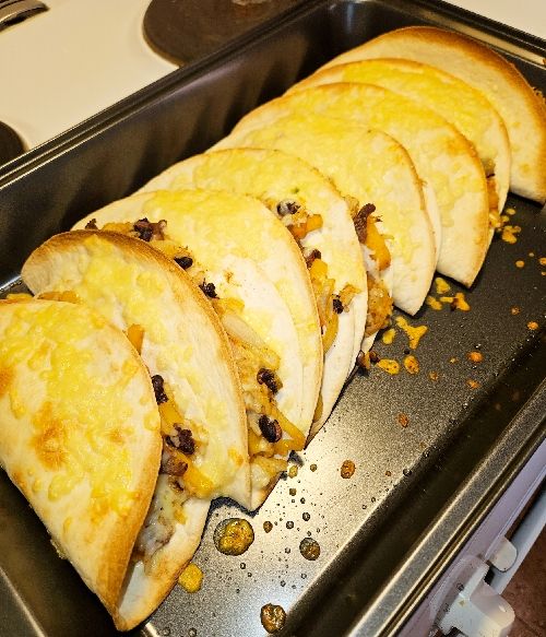 Lagade burritos med ris och svarta bönor till middag. Och eftersom det fanns kvar lite grillad ryggbiff fick strimlor av den också slinka med.