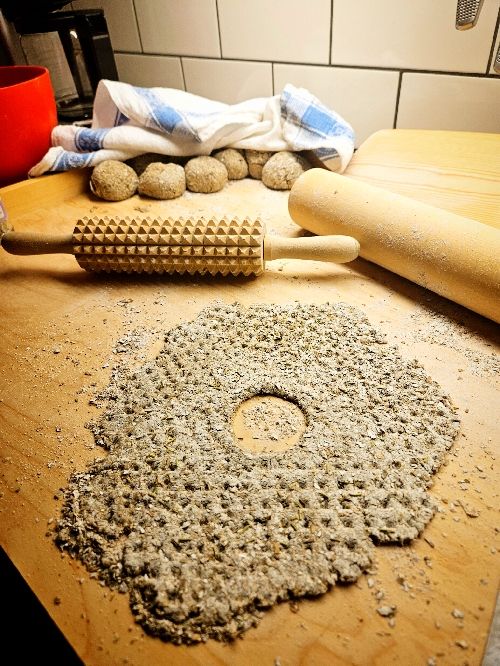 Rågknäcke med anis och hela fänkålsfrön. Tillsatte även rostade solrosfrön i degen.