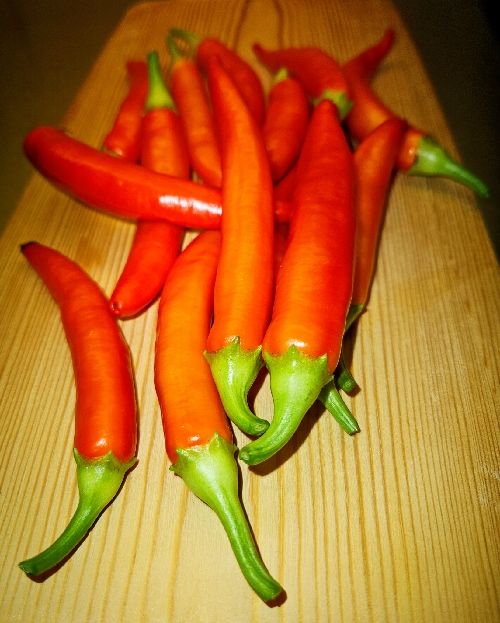 Maken skördade chili i tvättstugan. Coolt. Blev en hel del till i frysen.
