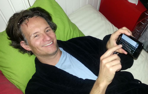 Gårdagens mums och dagens födelsedagsbarn morgonmyser i sängen med min present – sin ”nya” S2:a .Busungen grattade med Svinto (internt familje skämt.. haha.. )och Grattischoklad!!