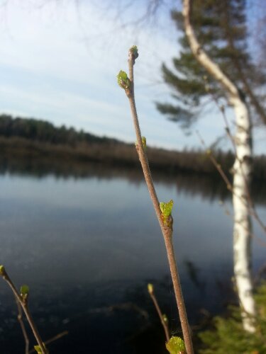 Efter avslutat dagsverke (där myrrbehandling med spray av gräsmattan ingick) hann jag och maken en prommis där vi konstaterade att nu, nu är det musöron på björkarna. Och kabbelekorna har slagit ut.