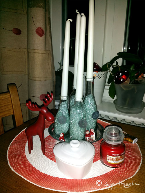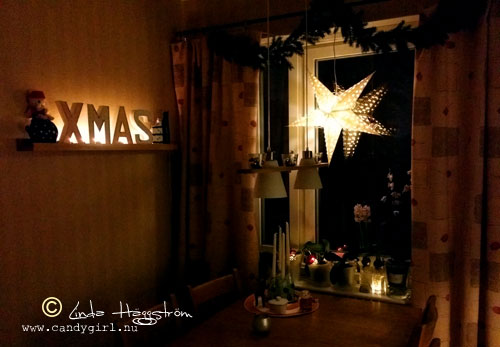Den får stå där tills i morgon eller på tisdag. Beror lite på vad vi hinner med på eftermiddagen i morgon… För om jag har tur får jag min sänggavel i morgon – och då kommer granen få skjuta upp inflyttandet.