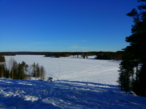Idag tog vi ännu längre sovmorgon, åkte skidor i solen, fixade golunch och sen kom maken.. Tempen orkade upp till årets högsta:hela 6 plus