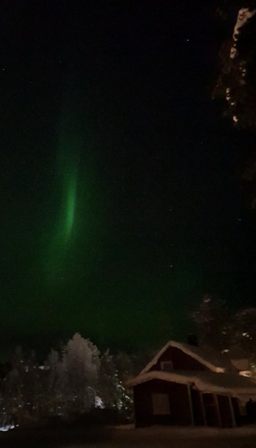 Ett rejält norrsken visade sig. Hade slut ström i ”riktiga kameran” så jag tänkte först skippa fotografering. Men ändrade mig och testade i alla fall.