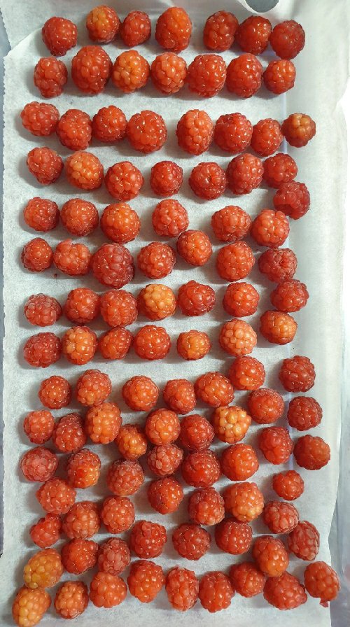 Hittade galet fina hallon vid älven. Plockade direkt i munnen men bestämde att ändå försöka balansera hem var sin näve för att styckfrysa då bären var ovanligt stora och fina.
