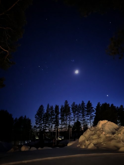 Strålande sol ute. Fast det blåste kalla nordliga vindar så vi valde bort skidor och tog en 90 minuters promenad istället.