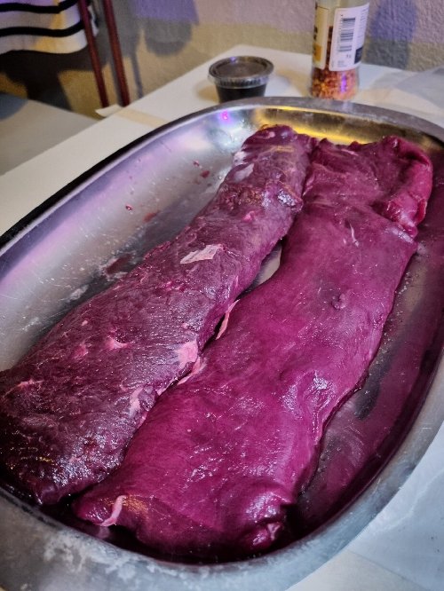 Vi skulle alltså tillaga hjortfile med chimchurrimajo och rostad batata hurra potatissallad.