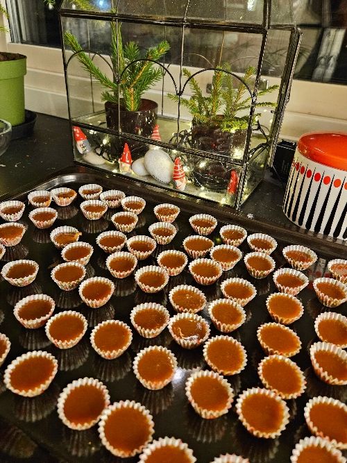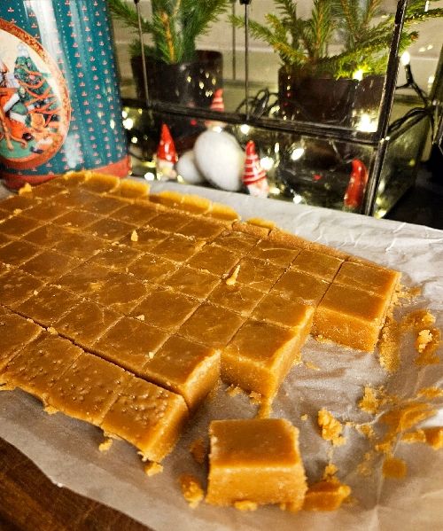 Och så fick den jäsa medan vi kokade Magnhilds gräddkola – som egentligen är en fudge.