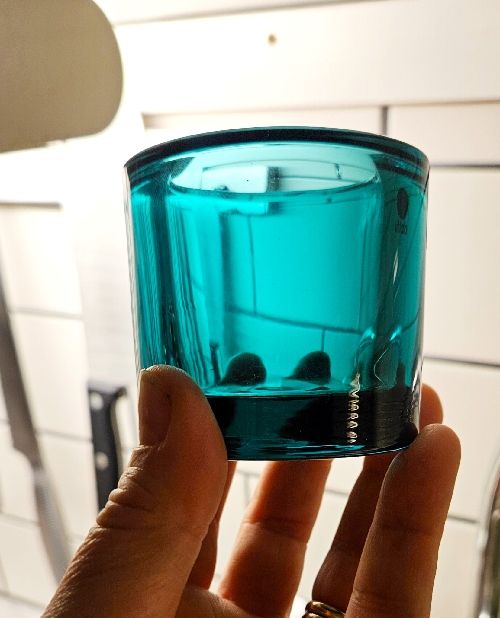 Struntade i att köpa denna, sea blue, då den kom för nåt år sen. Vi har nämligen en gammal med samma namn och jag frågade Iittala om det var nyutgåva med samma färg. Enligt dom var det så. Men nu när jag såg den irl blev jag tveksam. Inte var det då samma nyans som den ocean blue vi har. Mer som emerald. 40% rabatt. Jag chansade.