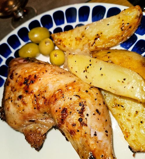 Kycklingen fick gå på grillen. Potatisen i ugnen. Det blev jättebra.