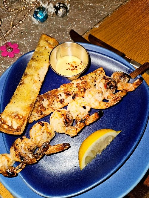 Trots det kyliga vädret (-23⁰) gick det fint att grilla spett med marinerad scampi.