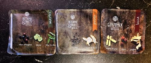 Har ett kit med tio färdiga smaksättningar. Tre av dessa sattes i gin redan under förmiddagen.