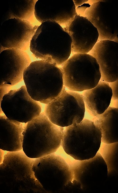 Graderna hade precis sjunkit till just under noll så jag hämtade snön från där det droppat från träden. Riktigt blöt, alltså.