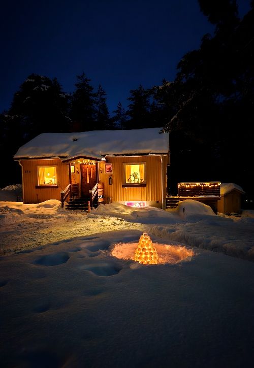 Efter lunch gick vi ut igen. Skottade klart. Altan, gång, runt bilen, in till bodan.. och jag byggde en snölykta.