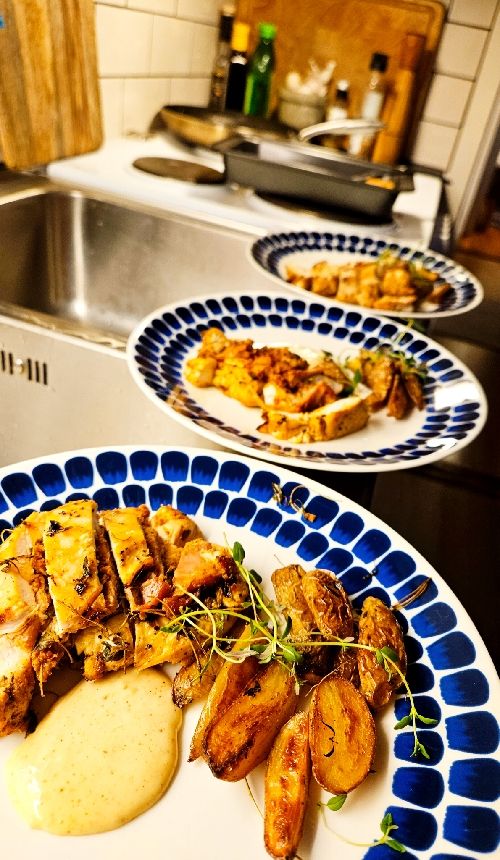 Dessa serverades sedan uppskivade tillsammans med ugnspotatis (med timjan) samt nyvispad aioli.