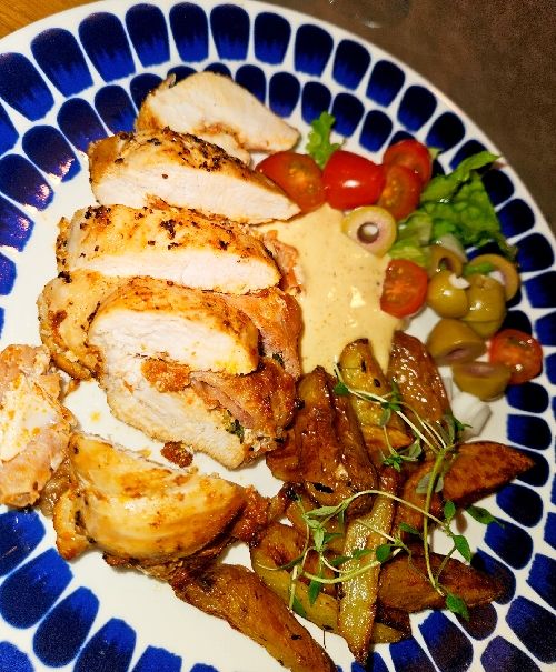 Där lagade vi en fantastisk fredagskyckling – Pesto- och proscuittofyllda kycklingfiléer med aioli