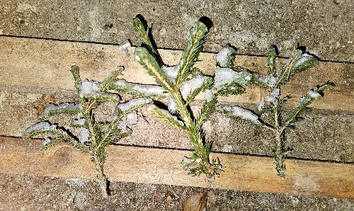 Granruskan till ytterdörren vilar i carporten.