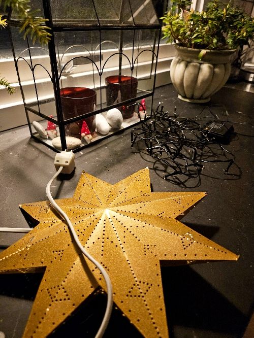 Vissa stjärnor är upphängda. Andra ligger redo att sticka i.
