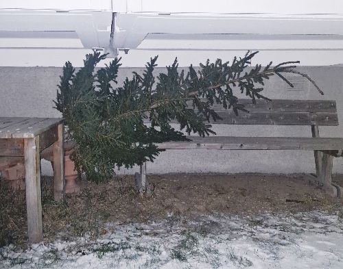 Ett pling i telefonen meddelade att årets julgran var levererad under balkongerna. Weeee. 🤩🤩❤️🎄