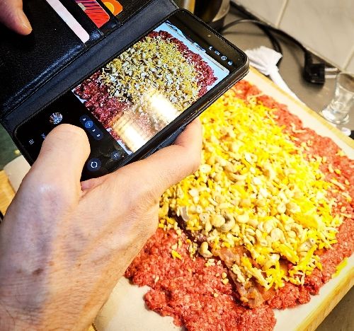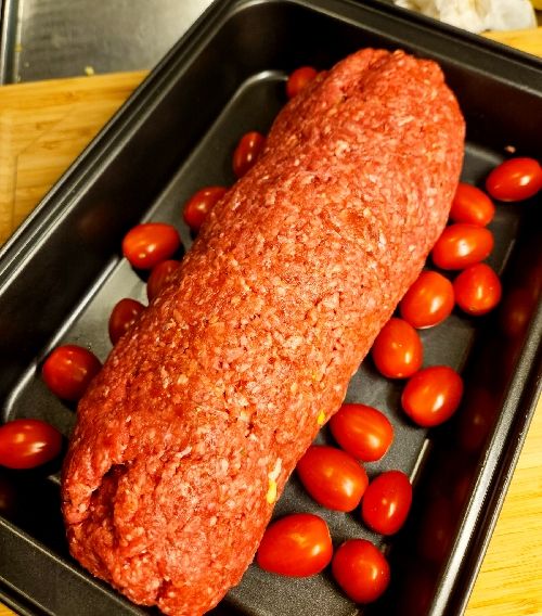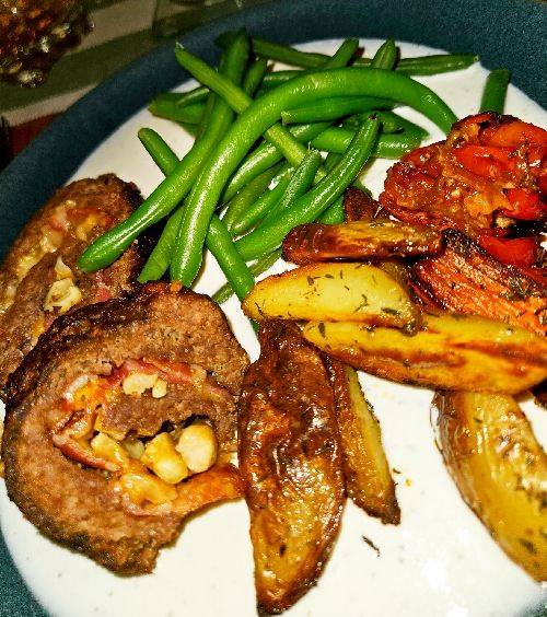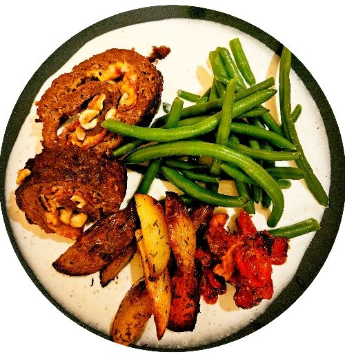 Fylld med fräst äppelrökt bacon, cashewnötter och mozarellaost.