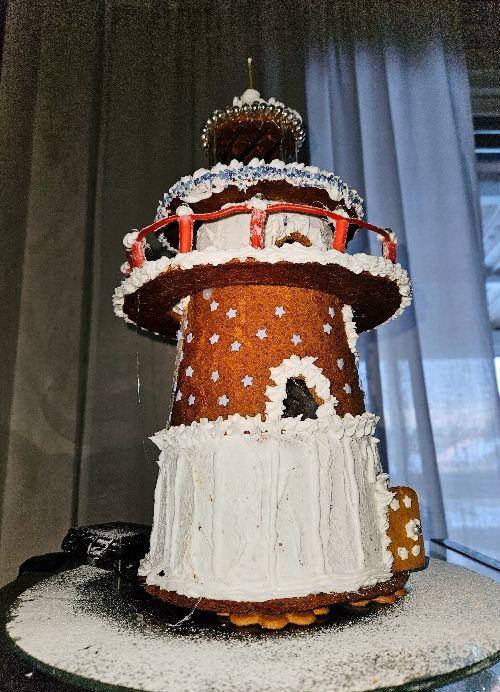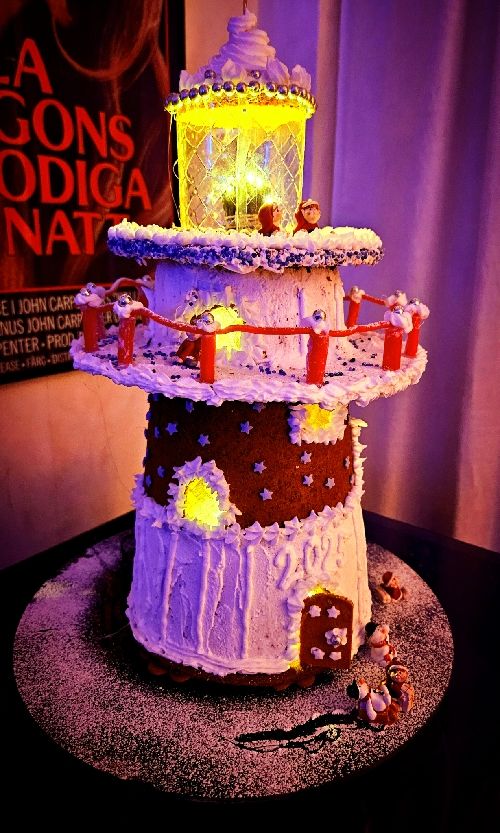 Pepparkaksfyren blev helt klar. Och flyttad till sin rätta plats.
