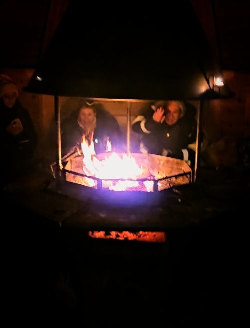 Vid åttatiden var jag totalt genomkall och gick hem igen. -23,4⁰ ute så det drog kallt utifrån trots elden där inne.