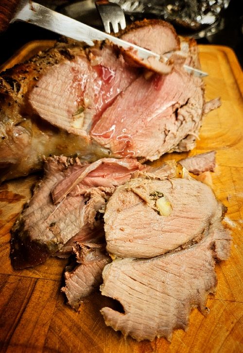 Skär upp lammsteken.