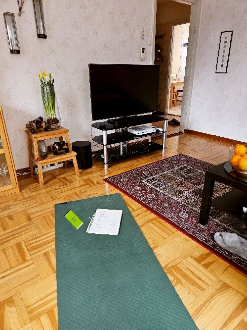 Maken och sonen tog en promenad. Jag satte ihop ett tabatapass som inte belastade vänster häl.