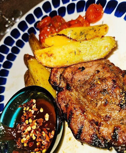 Till kvällen plockade vi fram en fläskkarré som legat i marinad sen morgonen. Massa ingefära, vitlök, honung, soja och timjan. Perfekt till grillen.