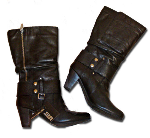Så här ser dom ut – mina nya skinnstövlar. Jag gick i dom halva eftermiddagen igår och sen fick maken fullkommligen slita av dom med våld från fötterna. För dragkedjan på sidan är nämligen fake – och nya skor och varma fötter innebar att jag satt fast.