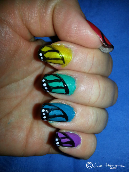 Mina hjärtan fick skav i kanterna… och ett av ”mina barn” på jobbet tyckte jag skulle måla fjärilar. Så jag målade fjärilsvingar. Och det blev ju inte helt fel…eller…?