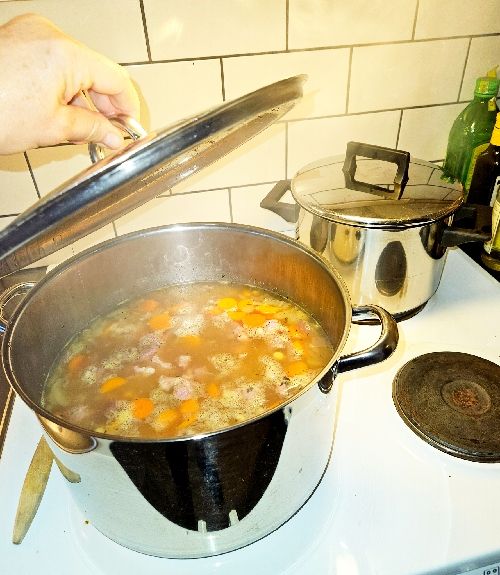 Jag lagade 15 portioner ärtsoppa och skurade efter eljobbet.
