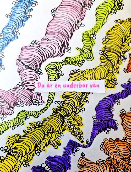 Och eftersom jag precis då satt med barnen och målade fick texten ta plats mitt på mitt mönstrande.