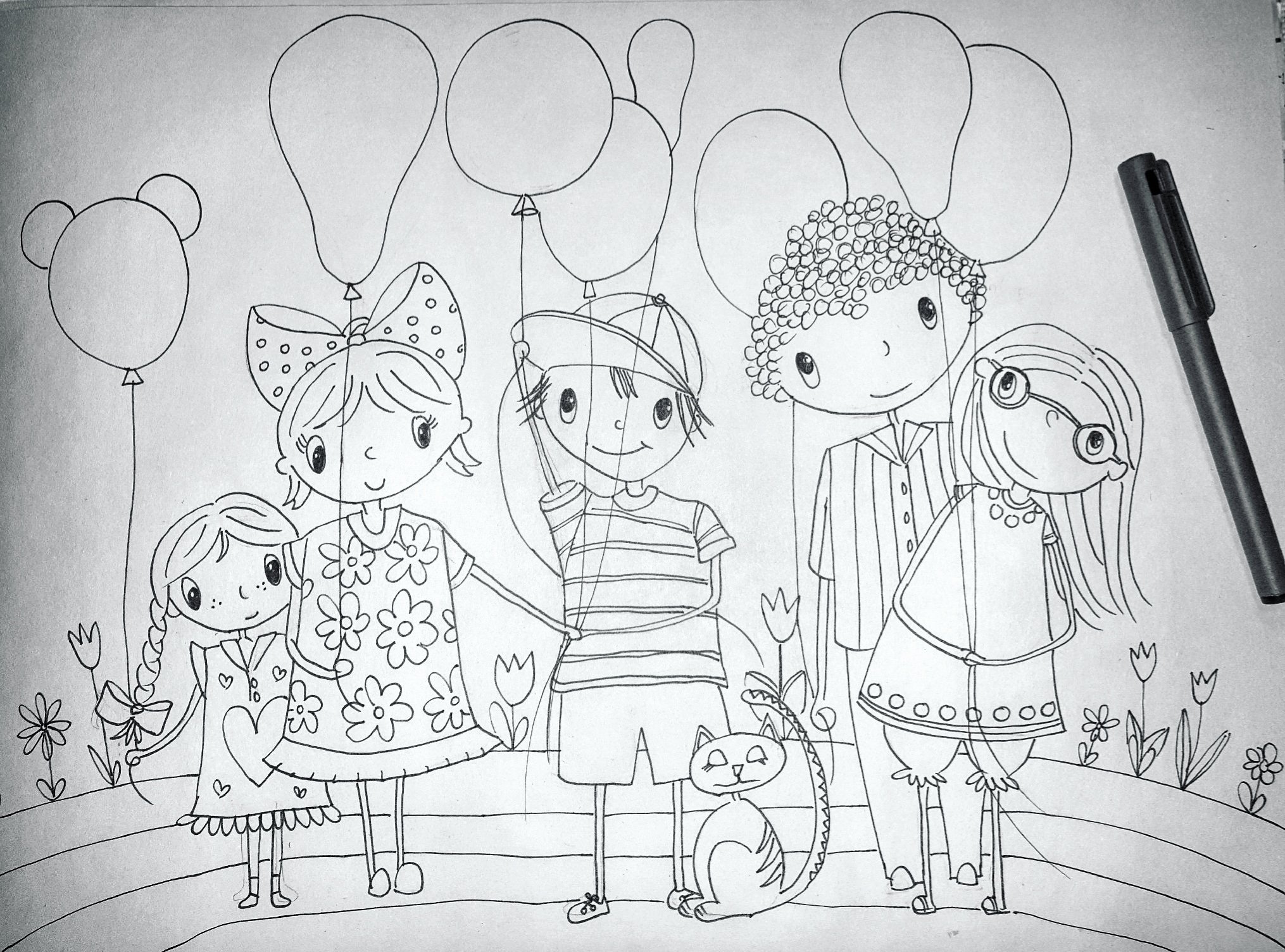 Efter middagen tog jag fram pennorna. Och just nu växer en barnbild fram.