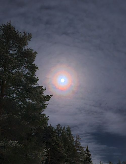 När vi åkte till Lilla Gula var det en stor regnbågsfärgad halo runt månen.
