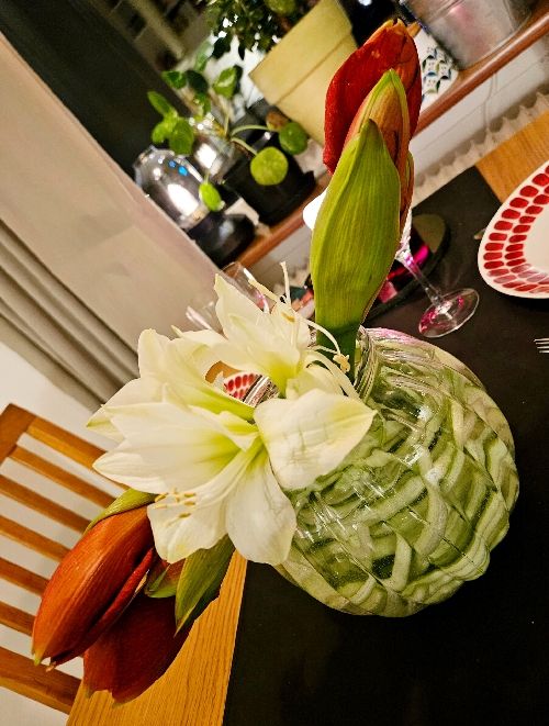 Jag provade trenden att strimla stjälkarna till amaryllisen. Blev väl sådär…